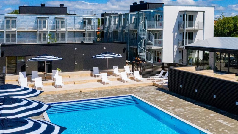 2 kilometer söder om Visby Ringmur ligger First Hotel Kokoloko. Hotellet som öppnade sommaren 2019 har en unik design med restaurang, pool, spabad, bastu, minigolf, utegym och barer. En av barerna ligger i lobbyn, en ligger vid poolen och den tredje uppe på takterrassen som erbjuder en fantastisk utsikt. De flesta av hotellets 90 rum har gemensam balkong med utsikt över havet och solnedgången.